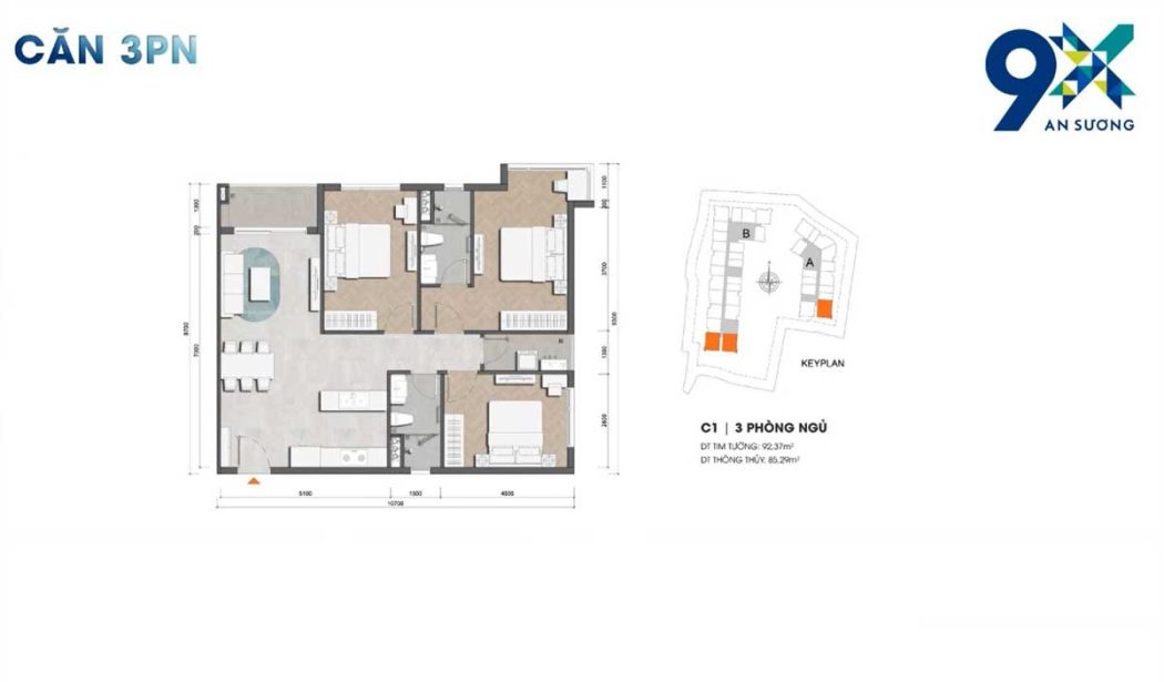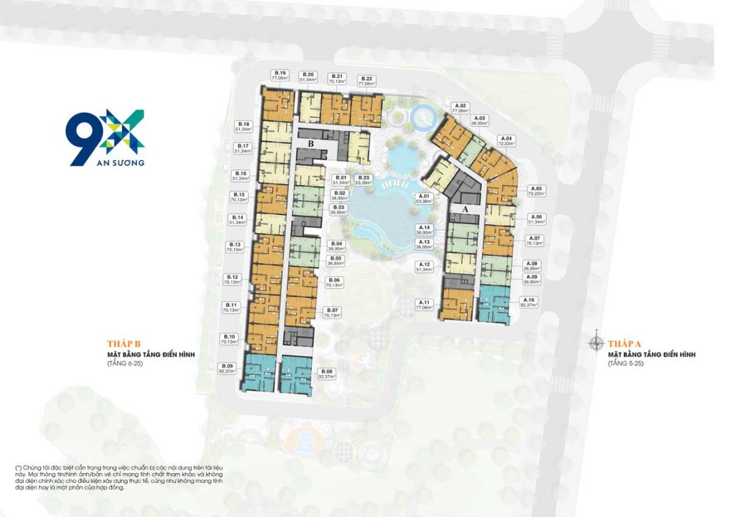 Mặt phẳng Dự án công trình Căn nhà 9X An Sương Hóc Môn được xây dựng dựng trên khuôn viên khu đất rộng lớn 11.000m2 với 2 Block căn nhà cộng đồng cư cao 25 tầng với 1000 căn nhà. Căn nhà 9X An Sương được thiết lập từ 1-2-3 phòng ngủ, thiết lập phù phù hợp với nơi sống xanh văn minh và không kém phần đẳng cung cấp.