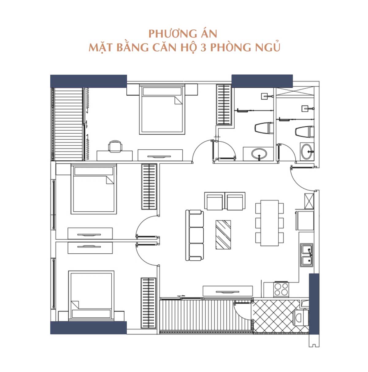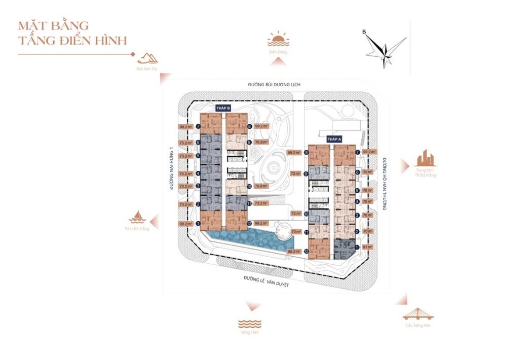 - Diện tích căn hộ trung bình: 70 m2 – 99,2 m2