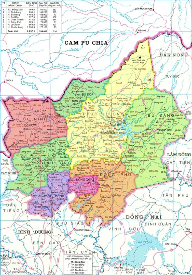BẢN ĐỒ HÀNH CHÍNH TỈNH BÌNH PHƯỚC