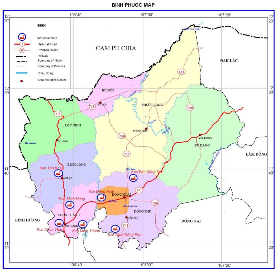 BẢN ĐỒ HÀNH CHÍNH TỈNH BÌNH PHƯỚC & THÔNG TIN QUY HOẠCH MỚI NHẤT