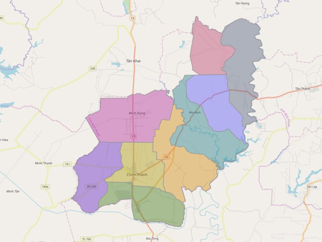 BẢN ĐỒ HÀNH CHÍNH HUYỆN CHƠN THÀNH