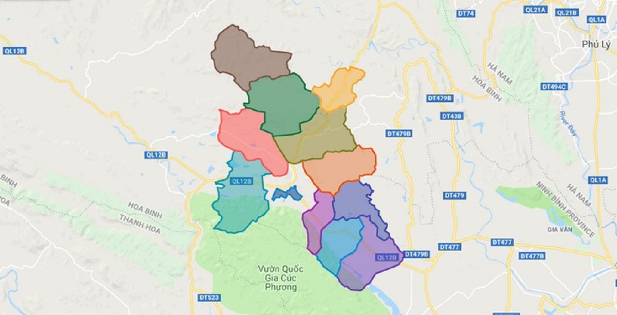 - Phía đông giáp huyện Lạc Thủy.