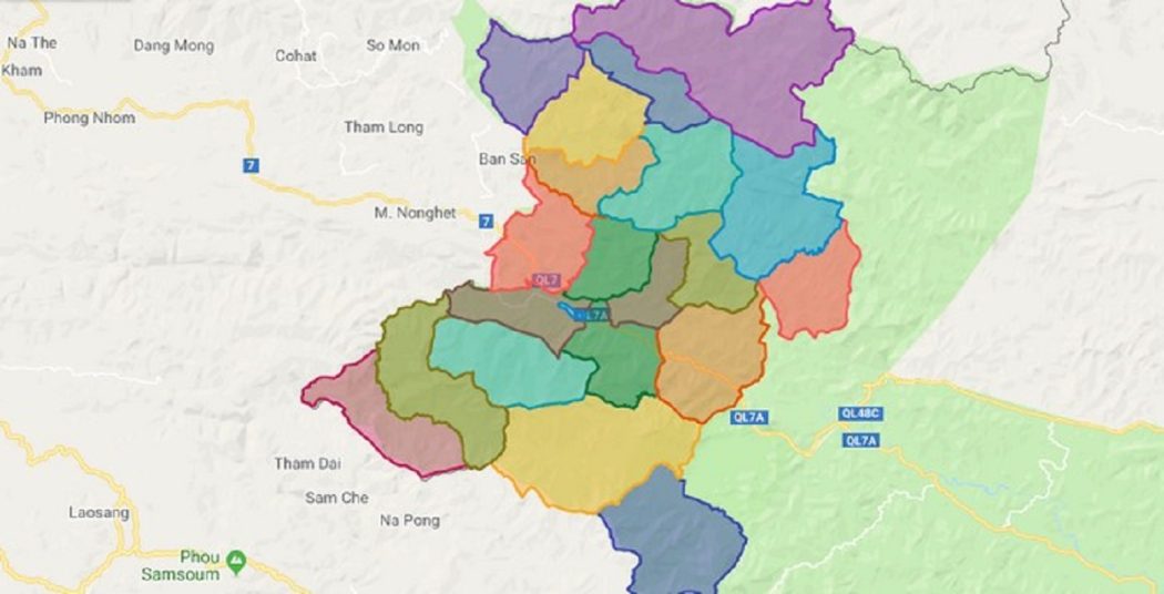 - Phía tây giáp các huyện Nong Het (Noọng Hét) và Mok May, tỉnh Xiengkhuang, Lào.