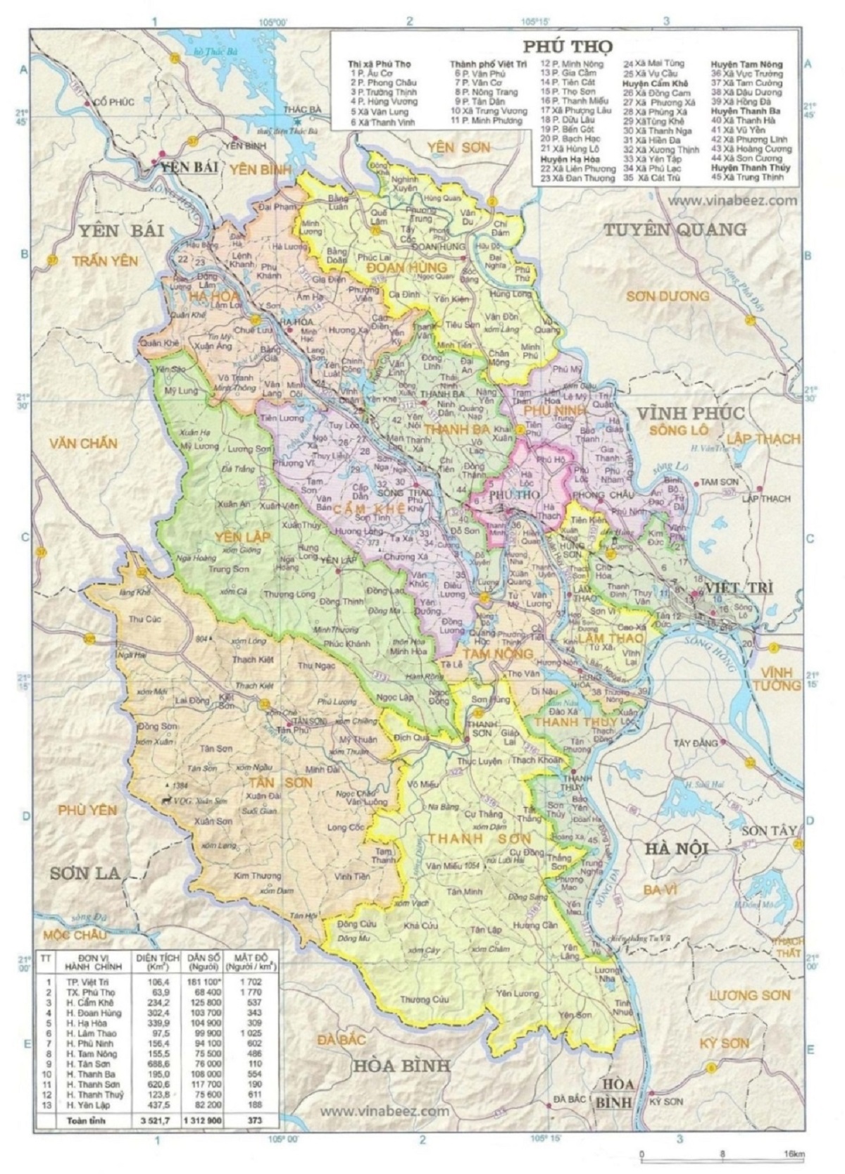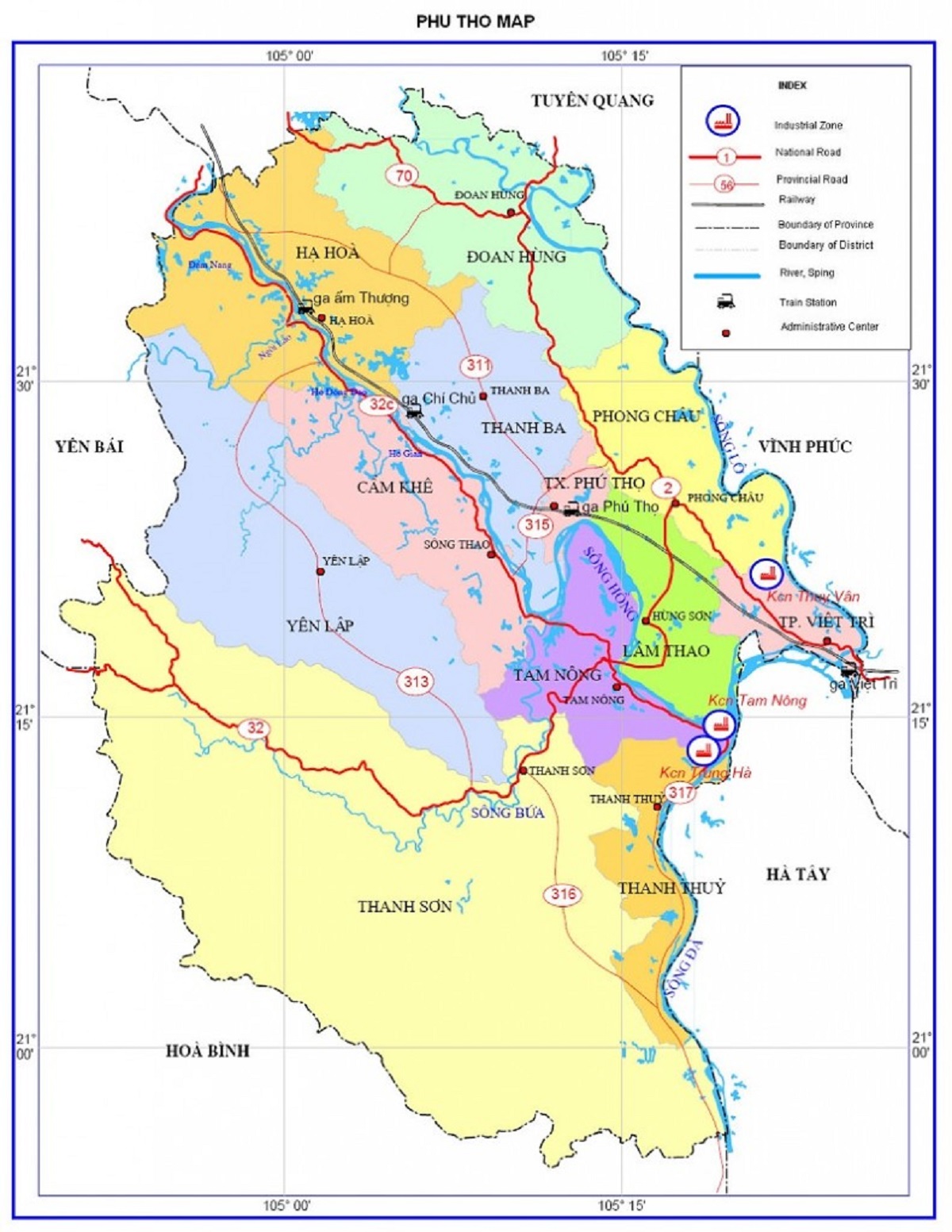 BẢN ĐỒ HÀNH CHÍNH TỈNH PHÚ THỌ