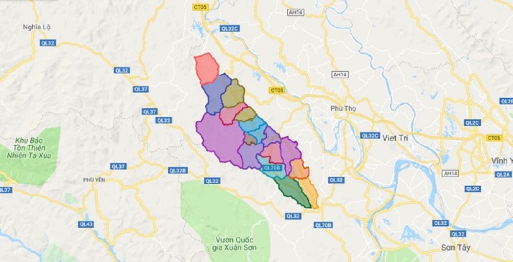 - Phía bắc, nó giáp với thị xã Phú Thọ và huyện Phù Ninh.