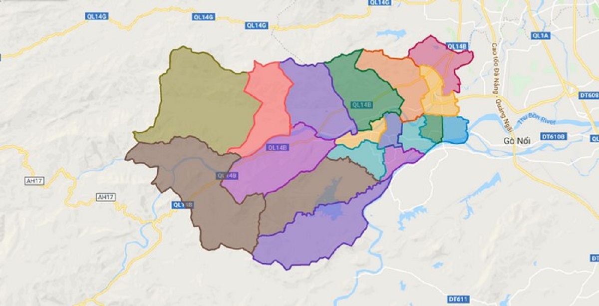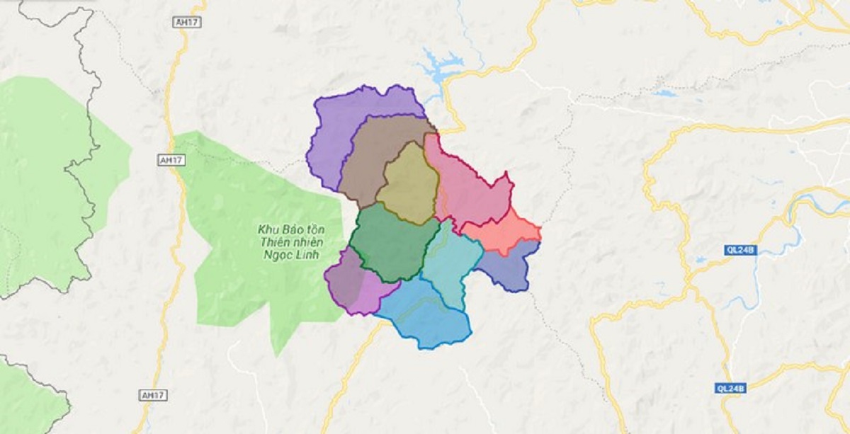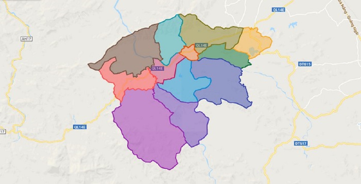 - Phía nam giáp huyện Tu Mơ Rông và huyện Kon Plông thuộc tỉnh Kon Tum.