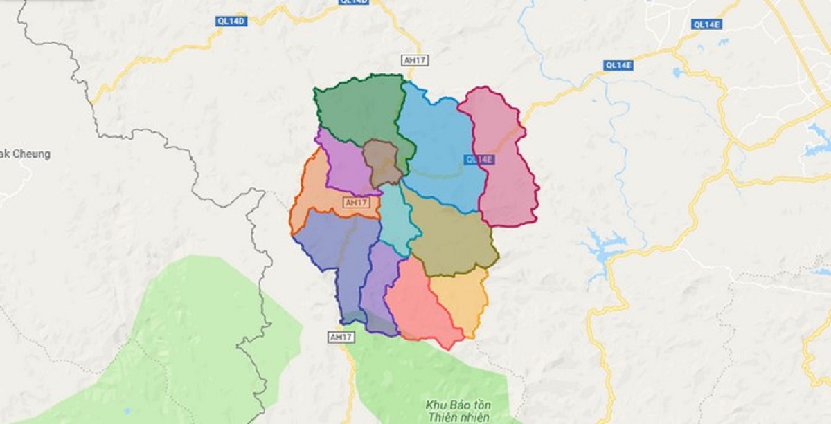 - Phía bắc giáp huyện Nam Đông, tỉnh Thừa Thiên Huế.