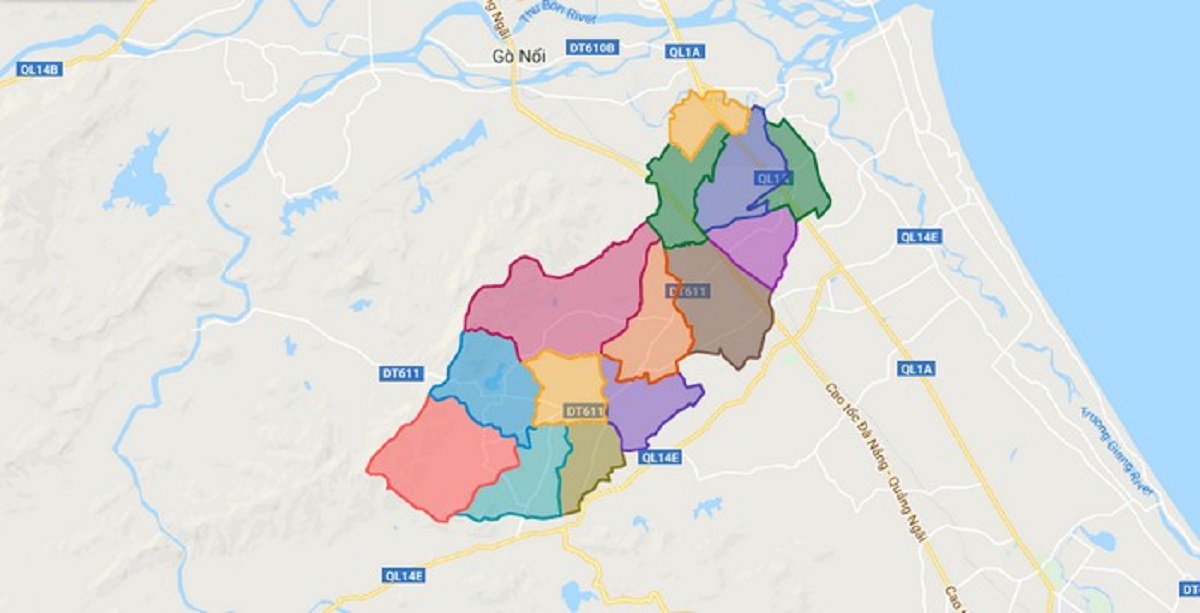 - Phía nam giáp huyện Núi Thành.