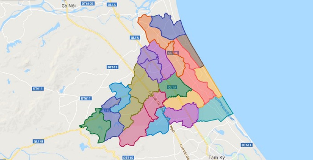 - Phía đông giáp thị xã Điện Bàn và huyện Duy Xuyên.