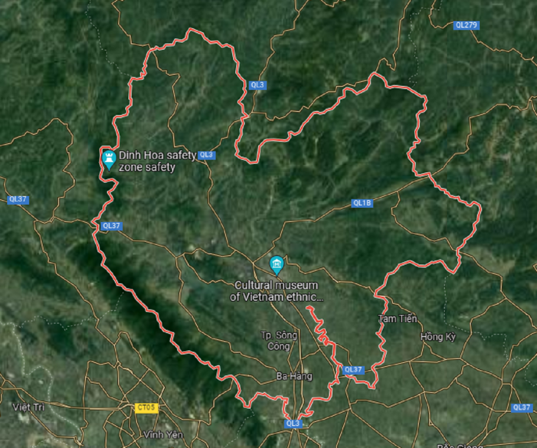 - Phía tây giáp huyện Đại Từ và huyện Bình Xuyên, tỉnh Vĩnh Phúc.