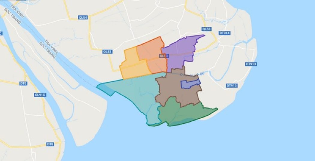 - Phía nam giáp huyện Duyên Hải.