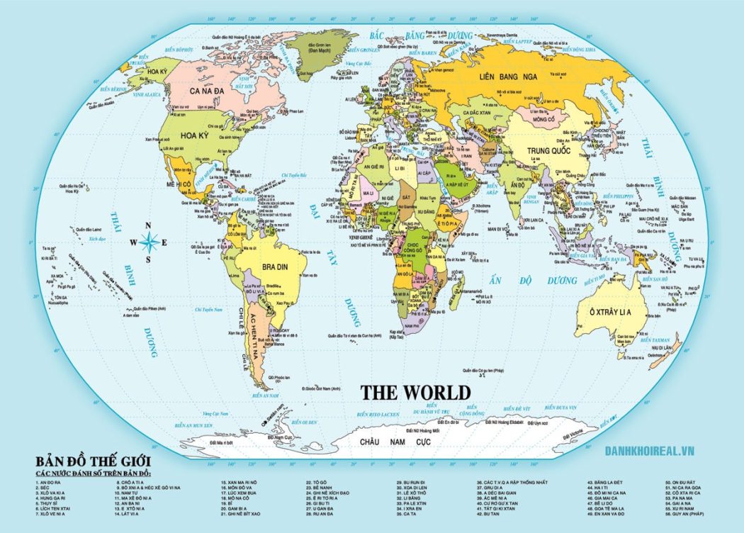 BẢN ĐỒ THẾ GIỚI VÀ 6 CHÂU LỤC MỚI NHẤT