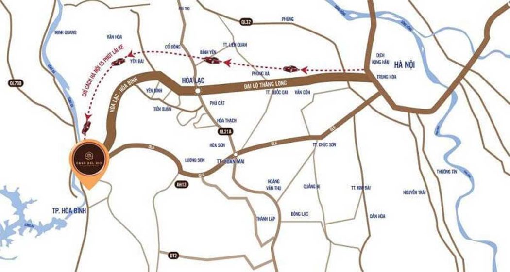 Ngoài ra, dự án cũng dễ dàng kết nối t với trung tâm Thủ Đô Hà Nội và các hạt nhân kinh tế vùng núi Tây Bắc thông qua mạng lưới các mạch máu giao thông liên vùng như Đại Lộ Thăng Long, cao tốc Hòa Lạc – Hòa Bình, Quốc Lộ 6, Quốc Lộ 708, Quốc Lộ 32,..
