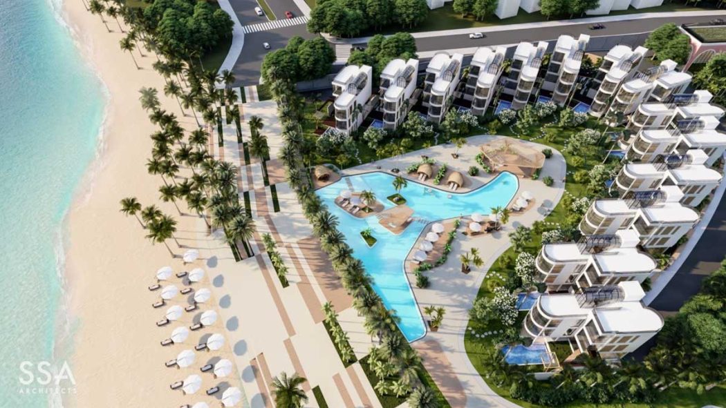 Khu căn hộ nghỉ dưỡng là một khối nhà cao tầng có thiết kế cao 12 tầng với tổng công 970 căn hộ, trong đó có hơn 900 căn hoàn toàn hướng biển. Mỗi căn hộ có từ 1 – 3 phòng ngủ và được thiết kế hiện đại với ban công và cửa kính trượt giúp tối đa hóa tầm nhìn ra biển.