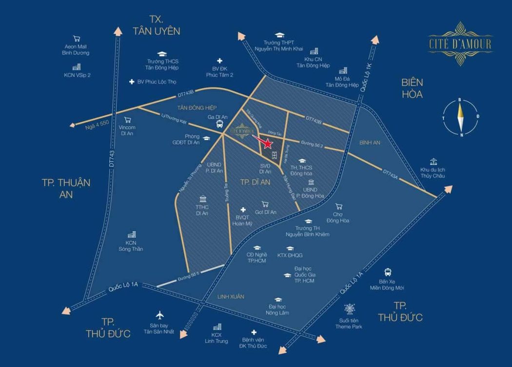 VỊ TRÍ DỰ ÁN NHÀ PHỐ CITÉ D’AMOUR DĨ AN BÌNH DƯƠNG