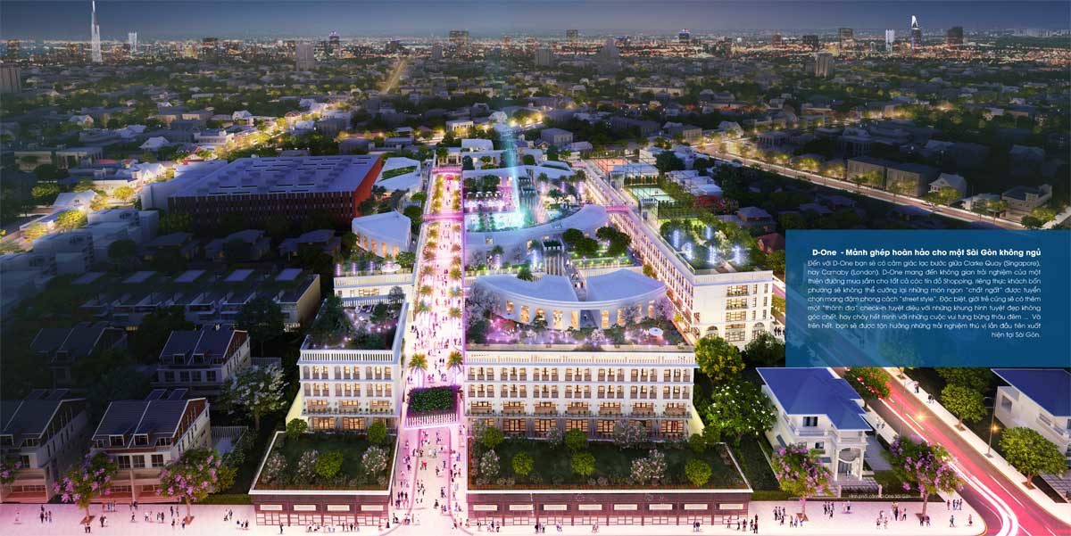 Tổng thể dự án D – One được xây dựng trên nền đất rộng 20.000m2, được phát triển theo mô hình căn hộ studio kết hợp mua sắm – giải trí – ẩm thực theo phong cách “street style”, gồm 558 căn hộ cao 5 tầng.