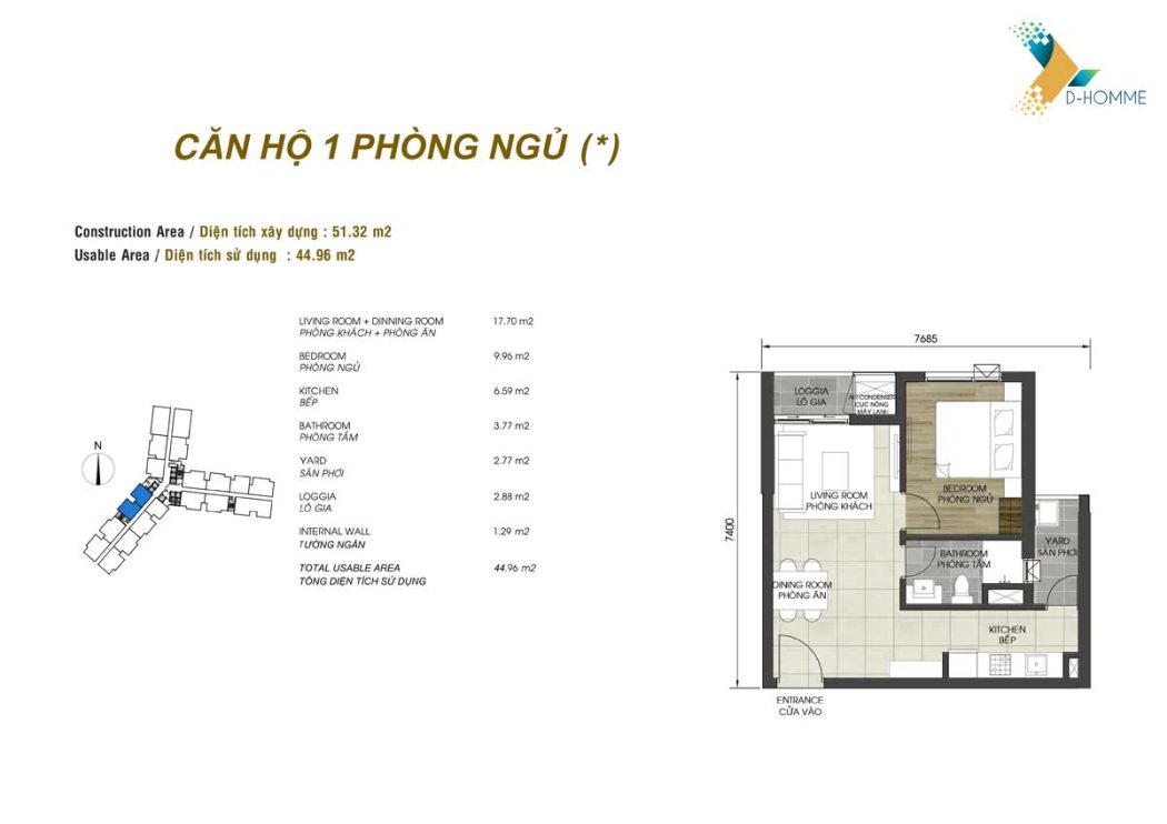 Diện tích căn hộ D – Homme quận 6 linh hoạt, bố trí từ 1 – 3 phòng ngủ, điểm nhấn là dòng sản phẩm Dual Key D-Homme căn hộ kép hai chìa khóa có thể vừa ở vừa khai thác cho thuê.