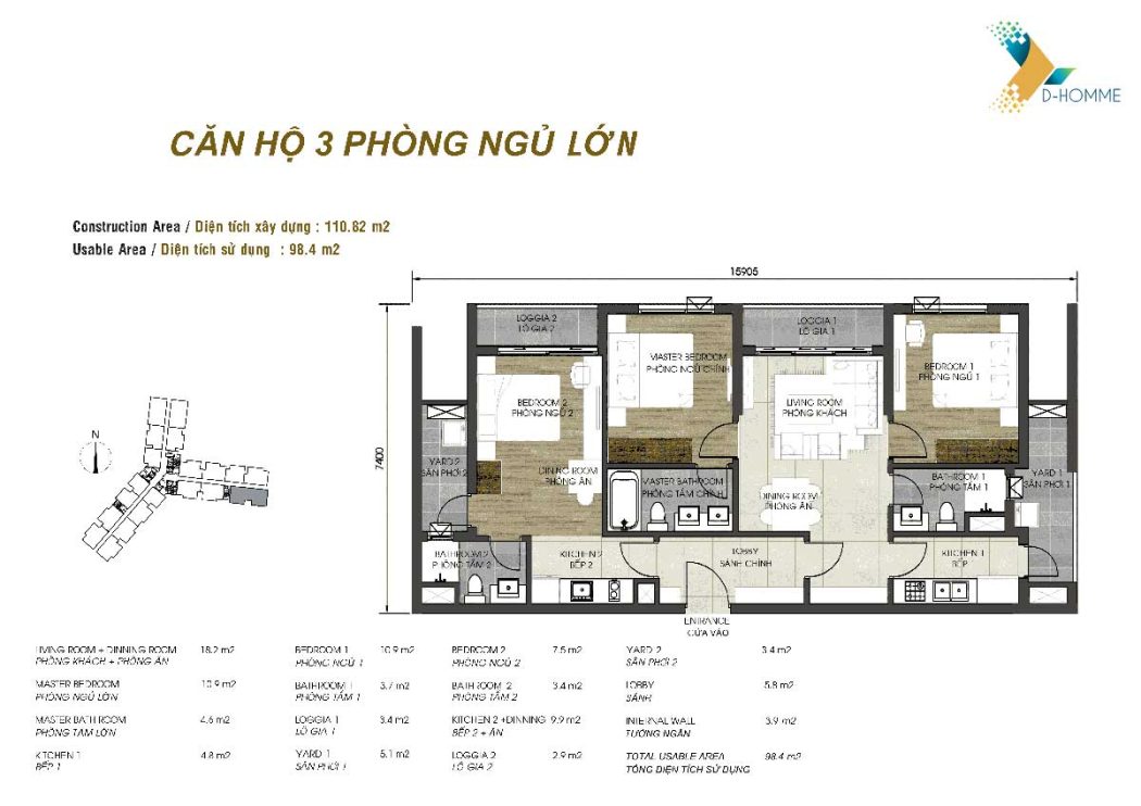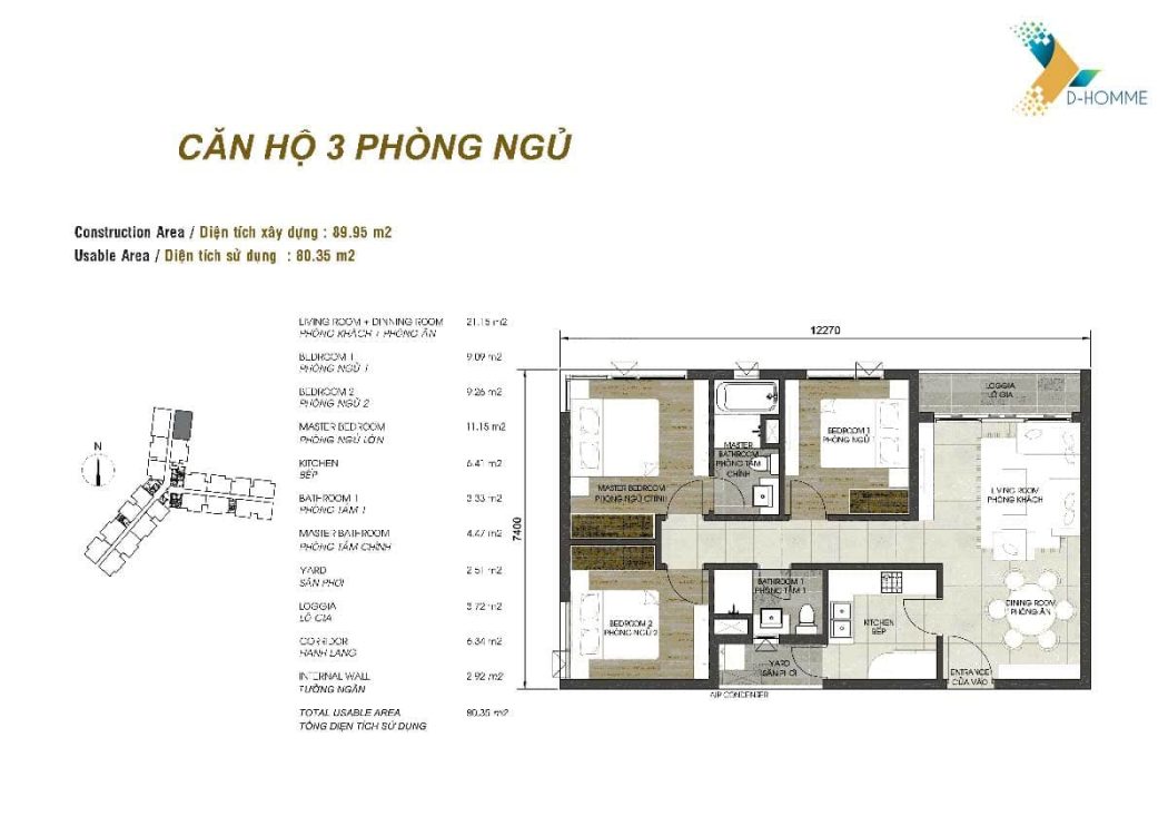 - Căn 3 phòng ngủ: 75 căn