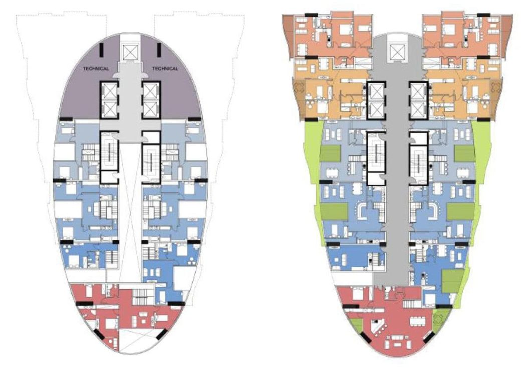 - Block khách sạn 4 sao: 1 block cao 18 tầng