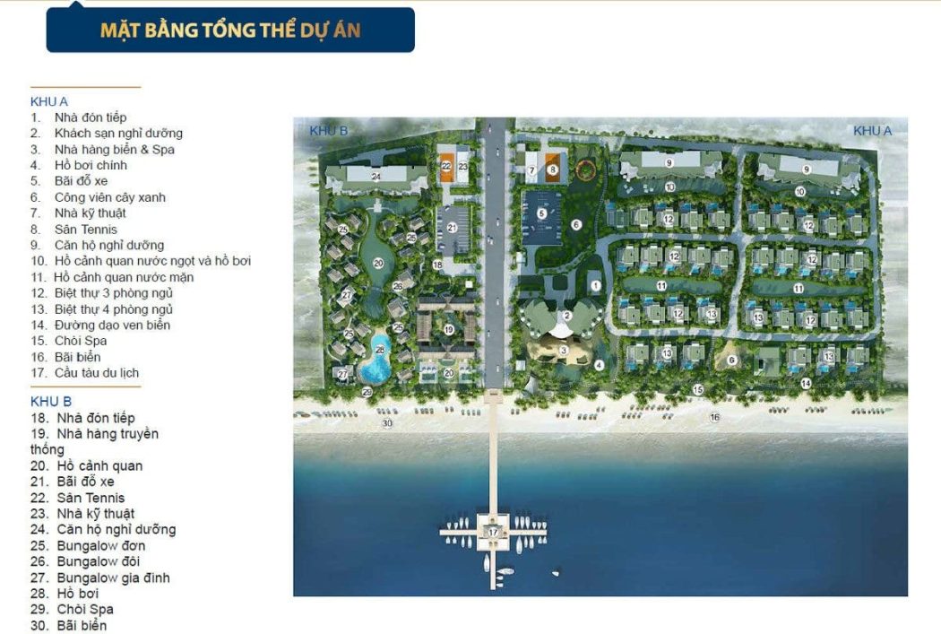 - Diện tích biệt thự: 500- 870 m2 & 25 Bungalow diện tích 90m²/căn