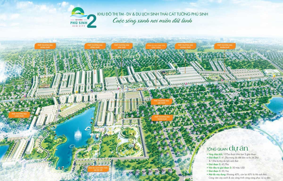– Giai đoạn 2 của dự án Khu đô thị du lịch sinh thái Cát Tường Phú Sinh có quy mô 45,7 ha với vốn đầu tư hơn 50 triệu USD.
