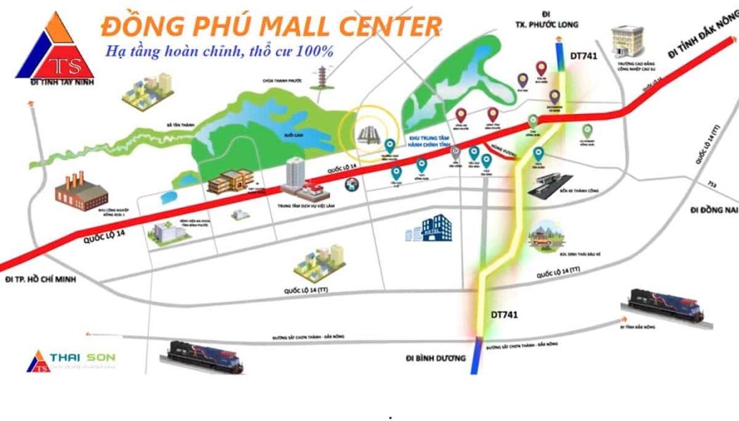 Dự án Khu đô thị và Shophouse Đồng Phú Mall Center do Công ty Cổ Phần Đầu tư & Dịch Vụ Bất Động Sản Thái Sơn là đơn vị phát triển dự án tại vị trí đắc đia trên Mặt tiền đường ĐT 741 nối dài vào Trung tâm TP Đồng Xoài. Dự án sát cạnh KCN Bắc Đồng Phú và bên cạnh là khu dân cư hiện hữu. Vị trí giao thông thuận tiện tạo nên vị trí đắc địa hơn so với các khu dân cư khác. Đảm bảo tăng giá nhanh, tỷ lệ sinh lời cao.