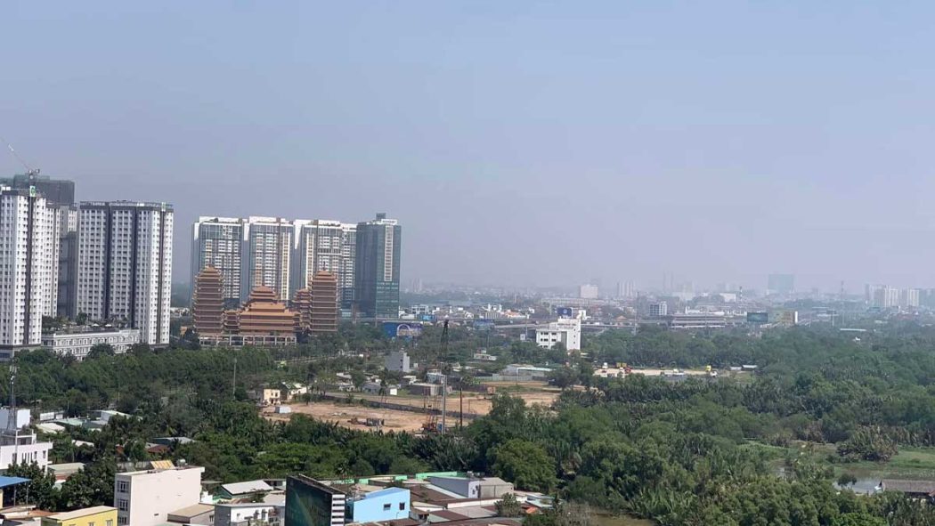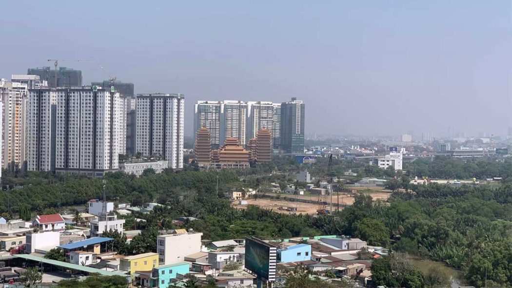 Toàn cảnh trung tâm khu đất dự án công trình. Phía đối lập là toà Lexington, cơ hội 500 m là Pháp viện Minh Đăng Quang