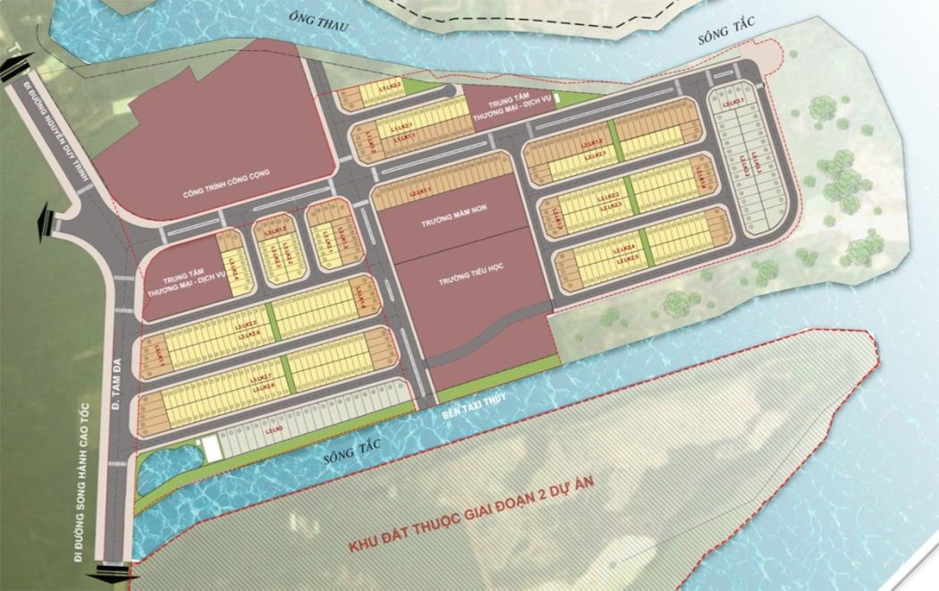 - Loại hình đầu tư: Đất nền nhà phố, shophouse, village ven sông