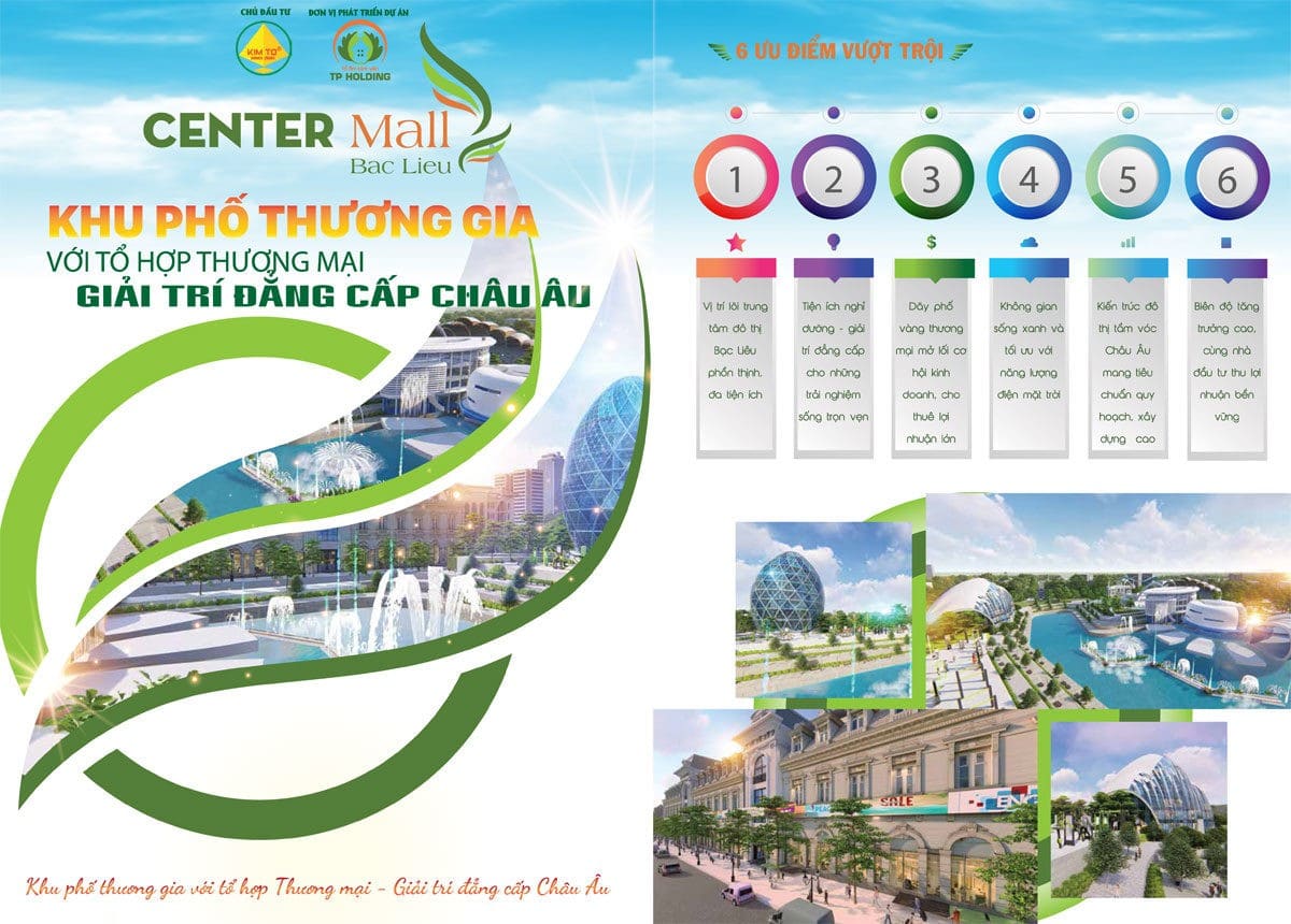 Dự án Khu đô thị Thương mại – Giải trí Center Mall Bạc Liêu trở thành mái nhà chung đẳng cấp nhất tại Tp.Bạc Liêu. Dự án với quy mô lớn có nhiều tiện ích nhất từ trước đến nay tại Thành Phố Bạc Liêu. Dự án Center Mall là một đô thị mới có bản sắc trong tổng thể không gian kiến trúc cảnh quan đồng bộ. Được thiết kế mang tính biểu tượng và theo lối kiến trúc Châu Âu .