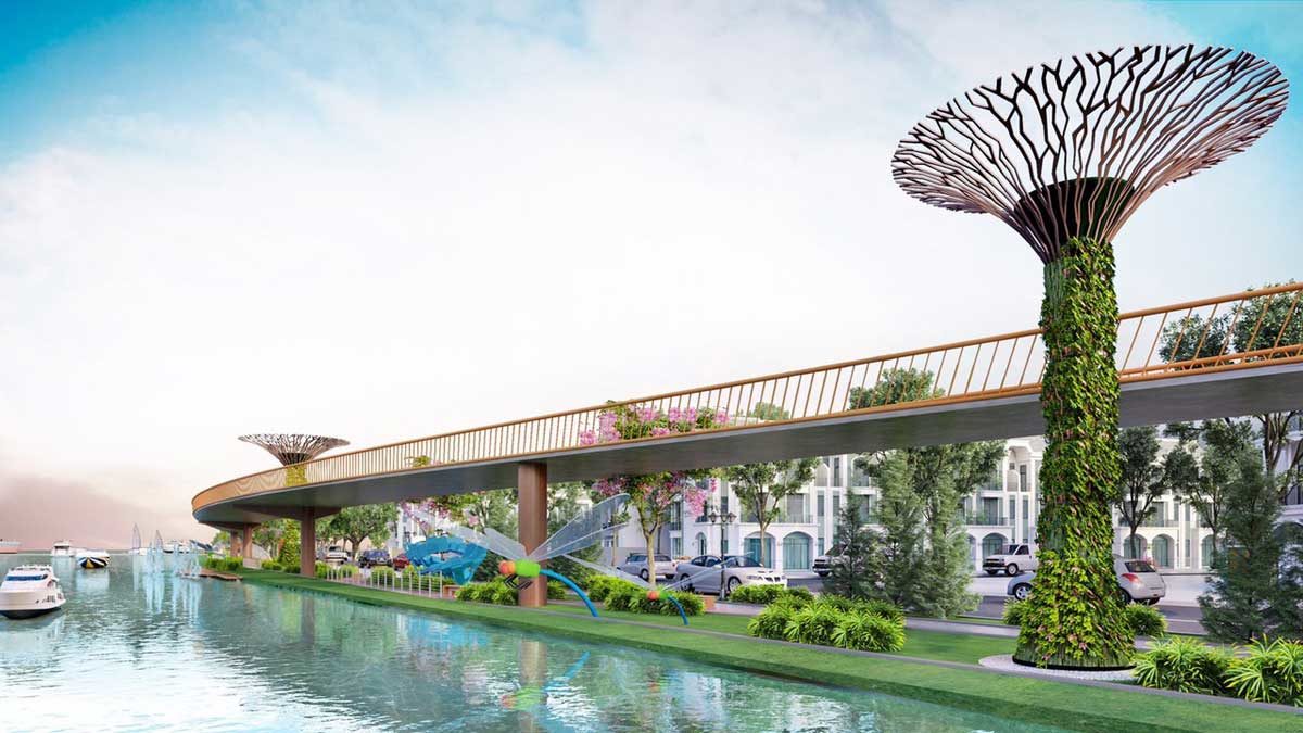 Hạ tầng – Công viên ven sông: Hạ tầng đồng bộ liên kết toàn vùng Hiện hạ tầng dự án đã hoàn thiện từ hệ thống điện, cấp thoát nước, đường nội bộ cho đến các công viên cây xanh.