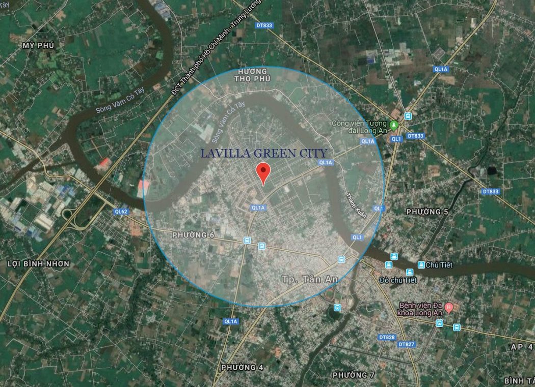 Vị trí Lavilla Green City nằm ngay vị trí vàng trên trục đường Hùng Vương nối dài, Phường 6, TP.Tân An, Tỉnh Long An ngay trung tâm của Thành phố Tân An. Dự án nằm gần Sông Vàm Cỏ Tây nên không gian sống tại đây vô cùng trong lành và xanh mát.