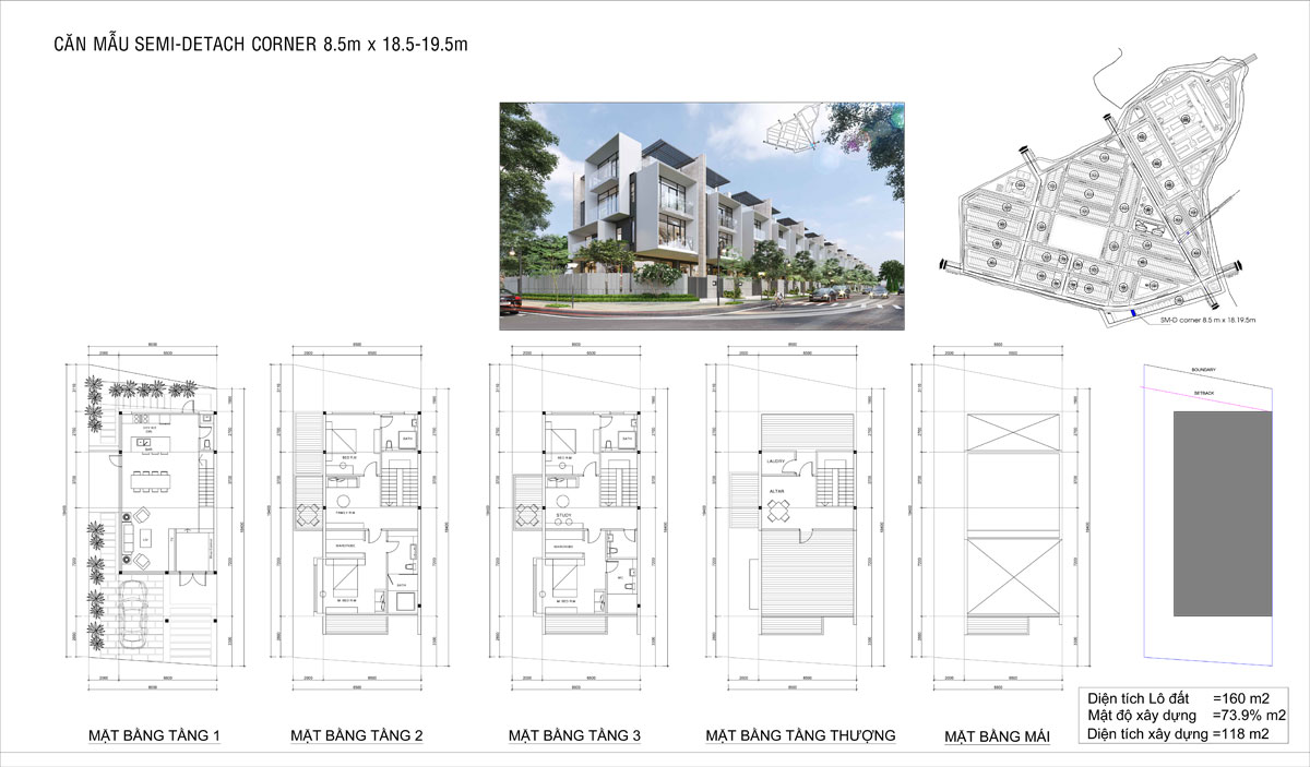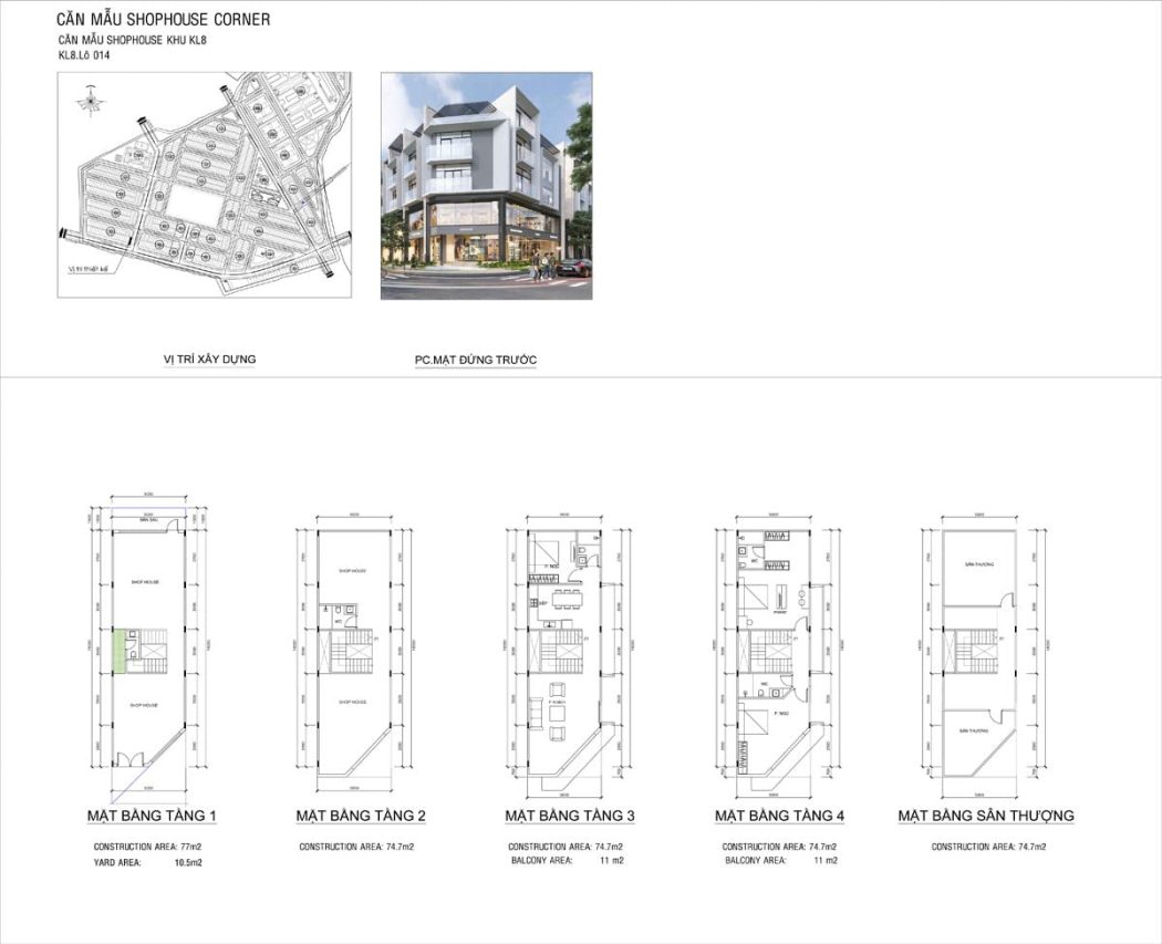 - Shophouse: 1 trệt, 3 lầu, 1 tum.