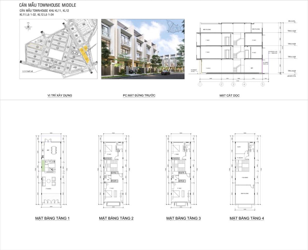 - Nhà Phố: 1 trệt, 2 lầu, 1 tum.