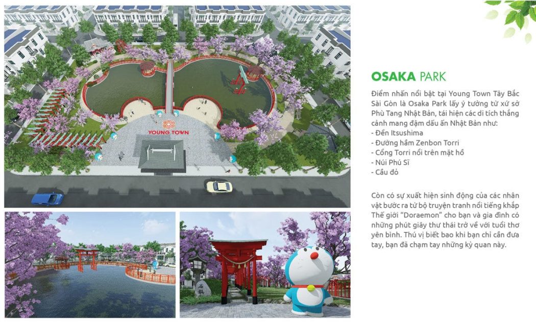 Khu Osaka Park rộng 3420m2: Lấy ý tưởng từ xứ sở Phù Tang – Nhật Bản, tái hiện các di tích danh lam thắng cảnh đậm dấu ấn Nhật như: