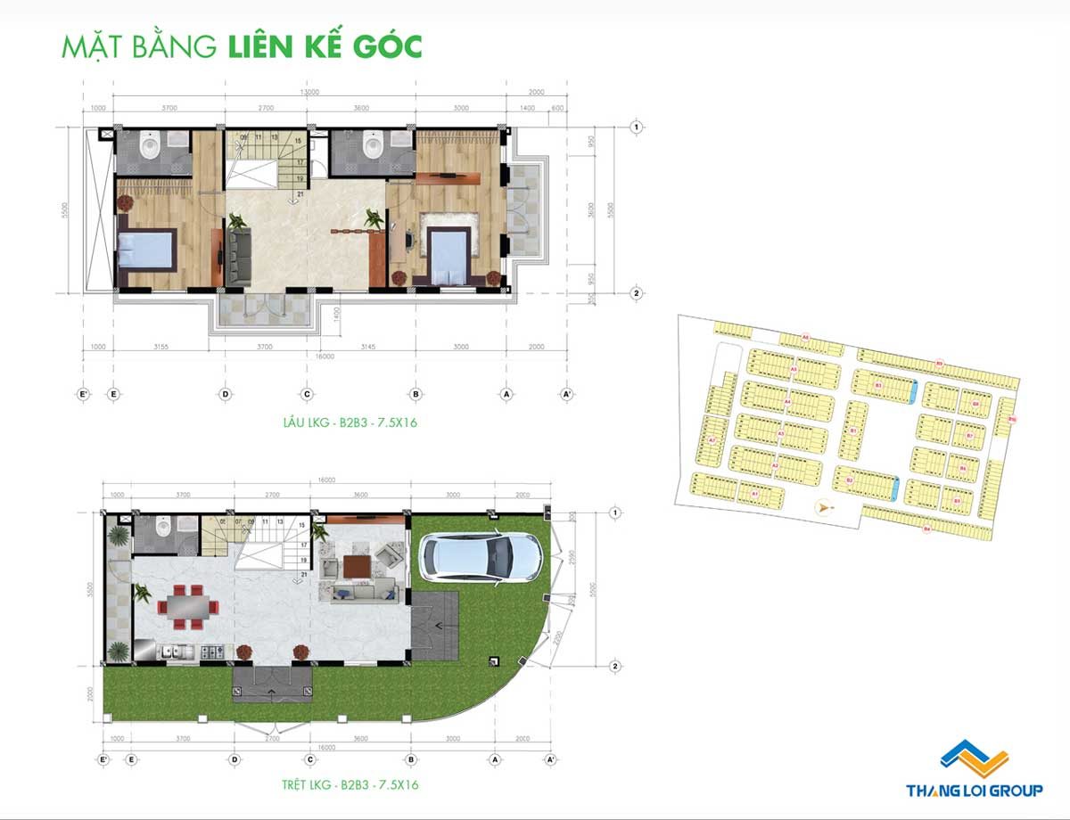 - Giai đoạn 1: triển khai 9,5 ha với 561 sản phẩm trong đó có 459 lô đất nền & 102 căn nhà phố