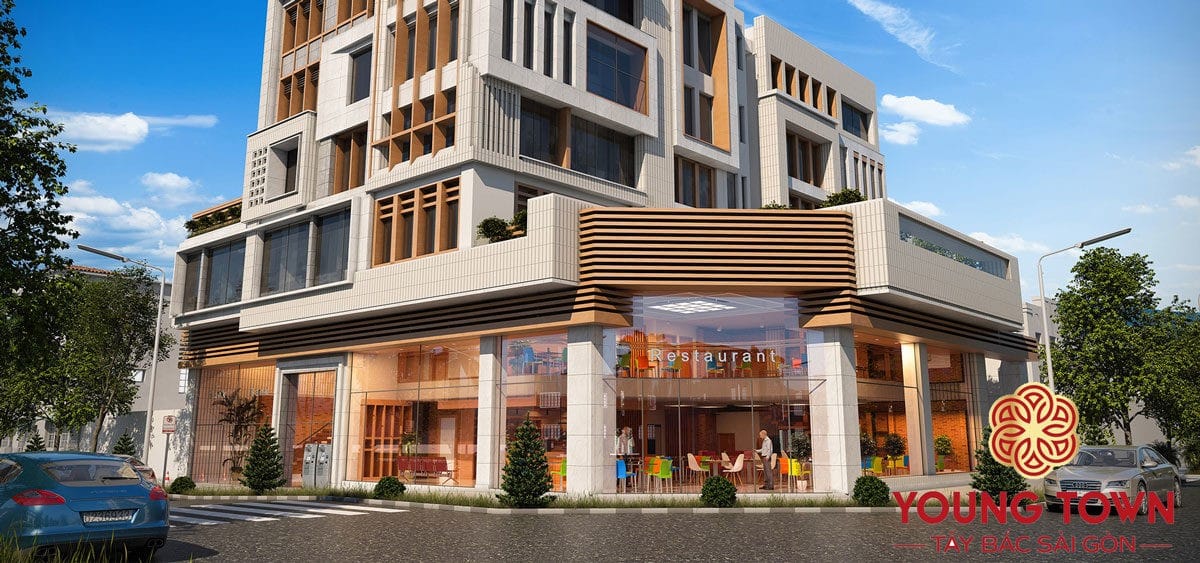 Nhà phố thương mại Young Town được thiết kế theo trường phái bán cổ điển Châu Âu. Những dãy phố thương mại tiện nghi, không gian sống khoa học có thể đón ánh sáng tràn ngập và không khí trong lành
