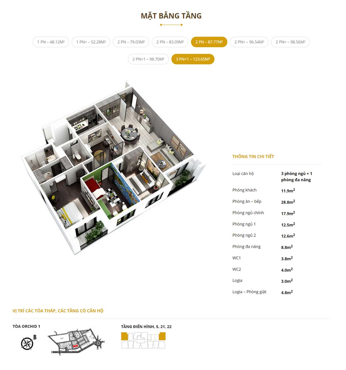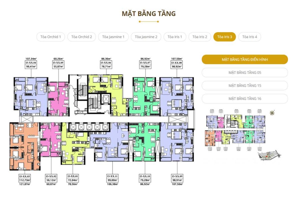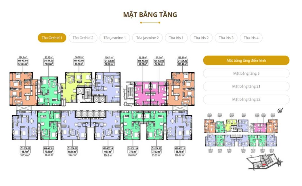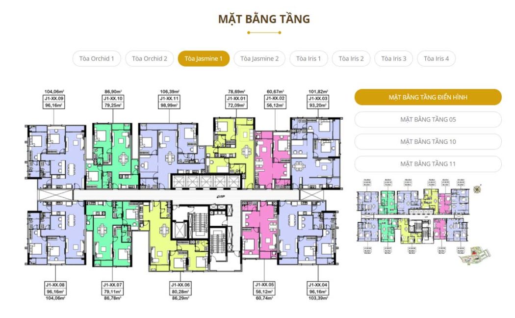 - Số lượng căn hộ: 2.187 căn diện tích từ 47 m2 – 240 m2, từ 1- 4 phòng ngủ