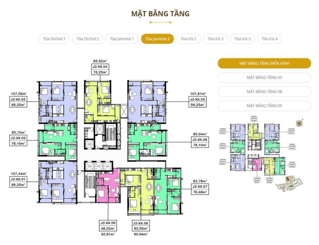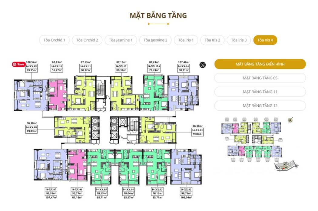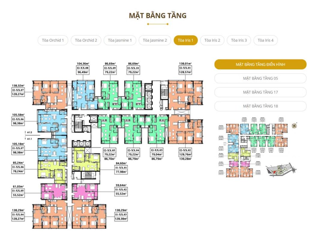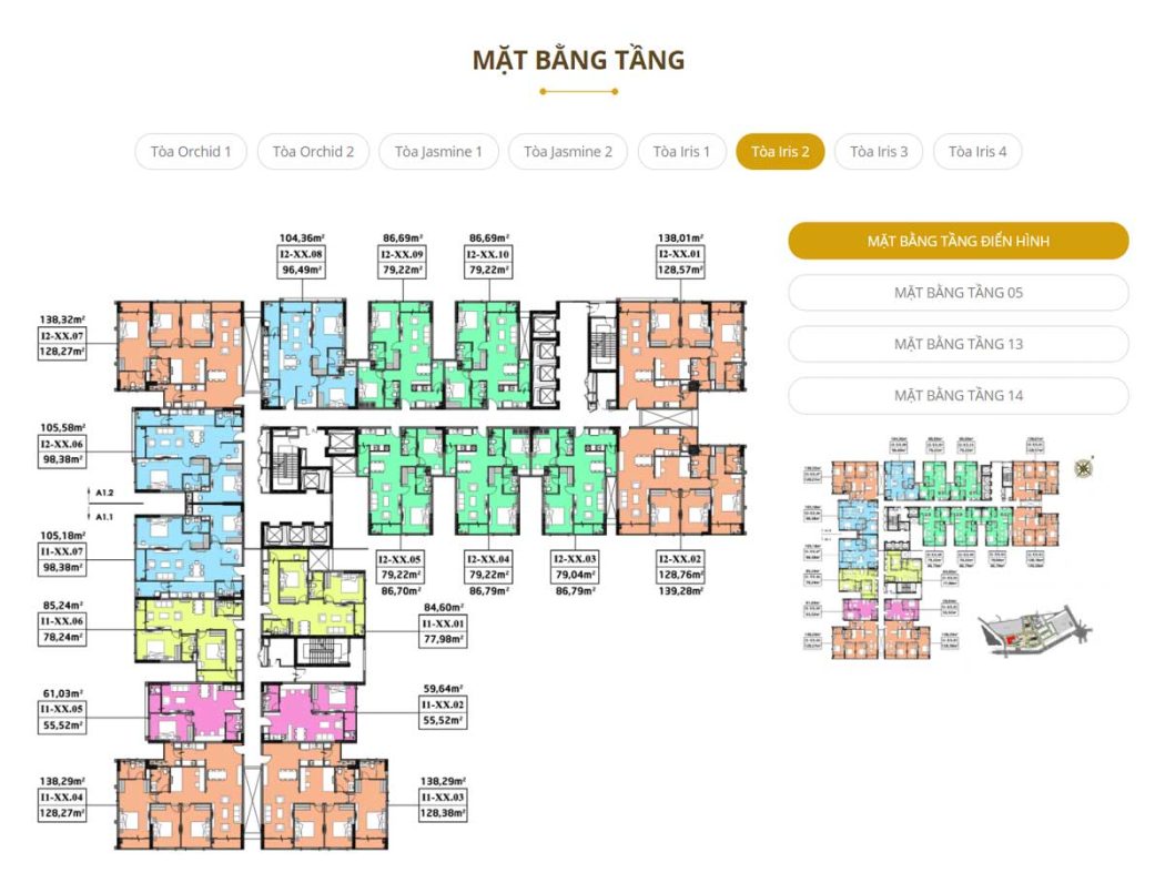 - Khu 1A2: 2 Block, cao 30 tầng gồm 1 tầng thương mại và 3 tầng giữ xe