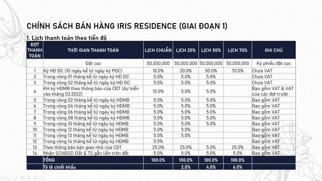 CHỦ ĐẦU TƯ DỰ ÁN IRIS RESIDENCE