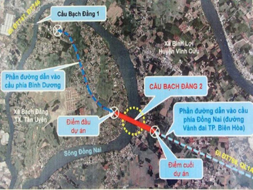 – Vị trí: cầu Bạch Đằng 2 bắc qua sông Đồng Nai nối xã Bạch Đằng (thị xã Tân Uyên, tỉnh Bình Dương) với xã Bình Lợi (huyện Vĩnh Cửu, tỉnh Đồng Nai).