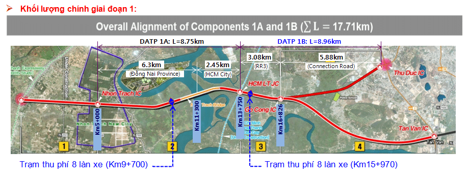 + Tiểu dự án 1B từ cao tốc TP HCM – Long Thành – Dầu Giây đến nút giao trạm 2 (xa lộ Hà Nội) dài gần 9 km, sẽ đầu tư theo hình thức BOT với tổng vốn gần 4.000 tỷ đồng. Trong đó chi phí giải phóng mặt bằng là 1.053 tỷ đồng do địa phương thực hiện và nhà đầu tư chi trả.