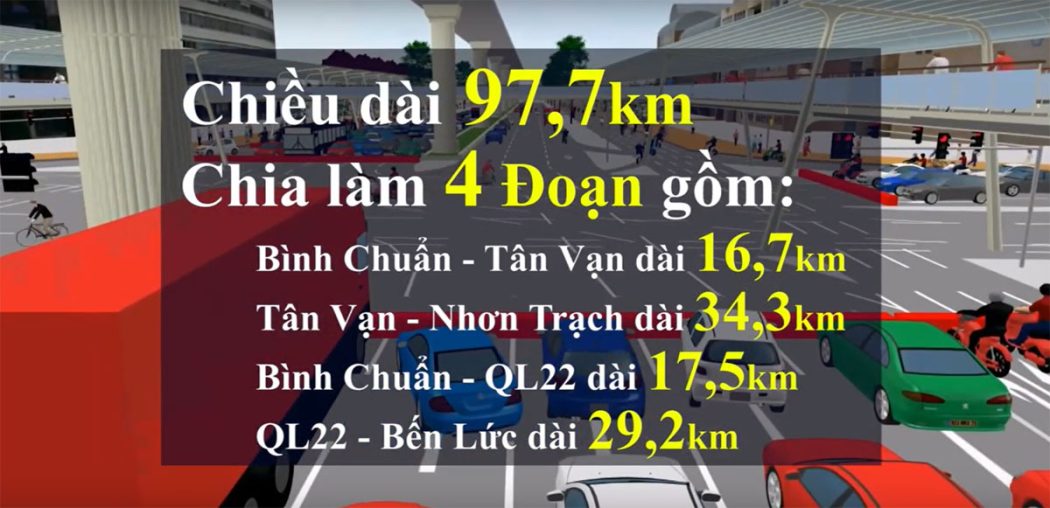 Dự án chia làm 4 đoạn: Tân Vạn – Nhơn Trạch, Tân Vạn – Bình Chuẩn, Bình Chuẩn – quốc lộ 22 và từ quốc lộ 22 đến cao tốc TP HCM – Trung Lương cùng cao tốc Bến Lức – Long Thành.