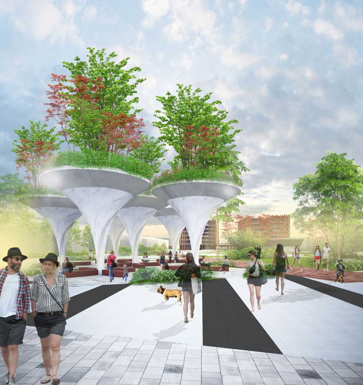 - Cụm công viên cây xanh và bãi đỗ xe quy mô lớn.