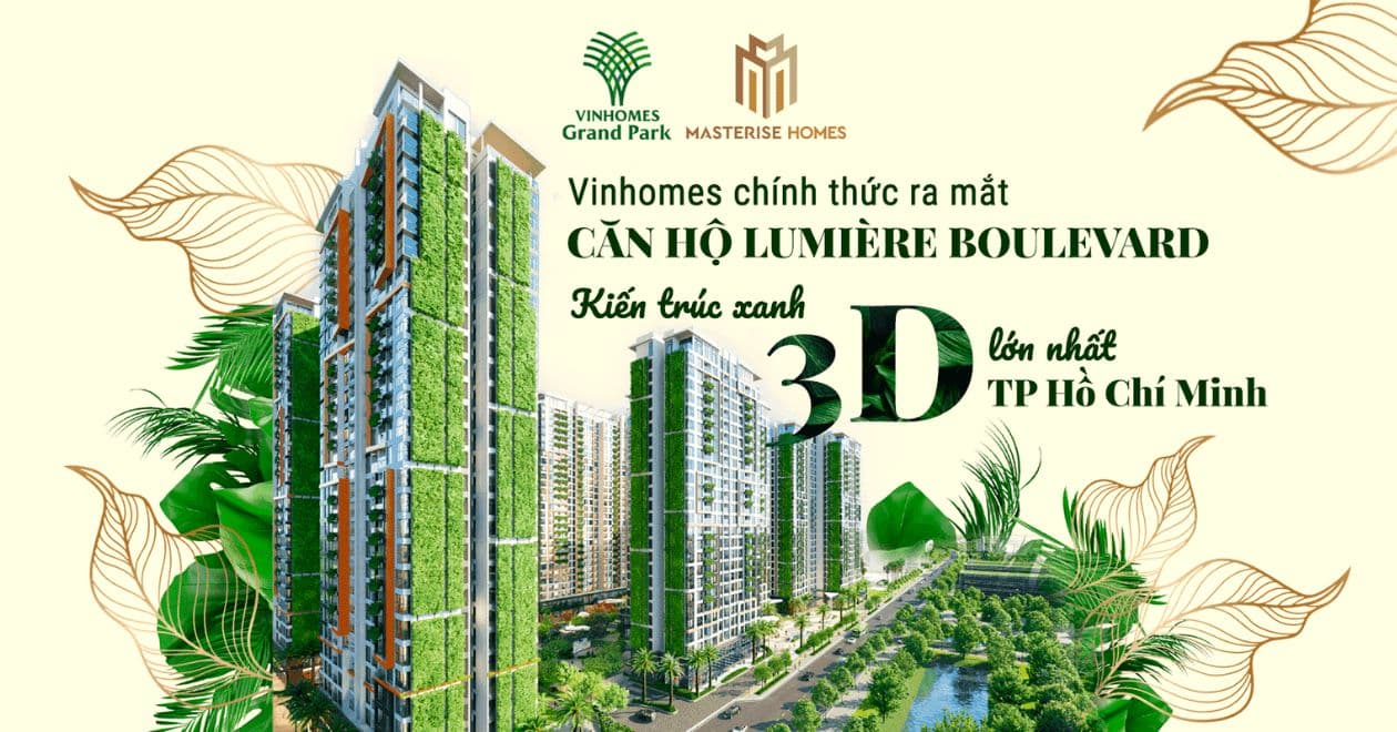 Lumiere Boulevard – Không gian sống trong lành bậc nhất tại TP Thủ Đức với lối kiến trúc xanh độc đáo và hệ thống tiện ích đặc quyền, Lumiere Boulevard được đánh giá là một trong những kiến trúc xanh 3D lớn nhất TPHCM. Dự án này đặc biệt hấp dẫn khi mật độ xây dựng chỉ 28%, giúp tạo nên không gian sống trong lành và gần gũi với thiên nhiên.