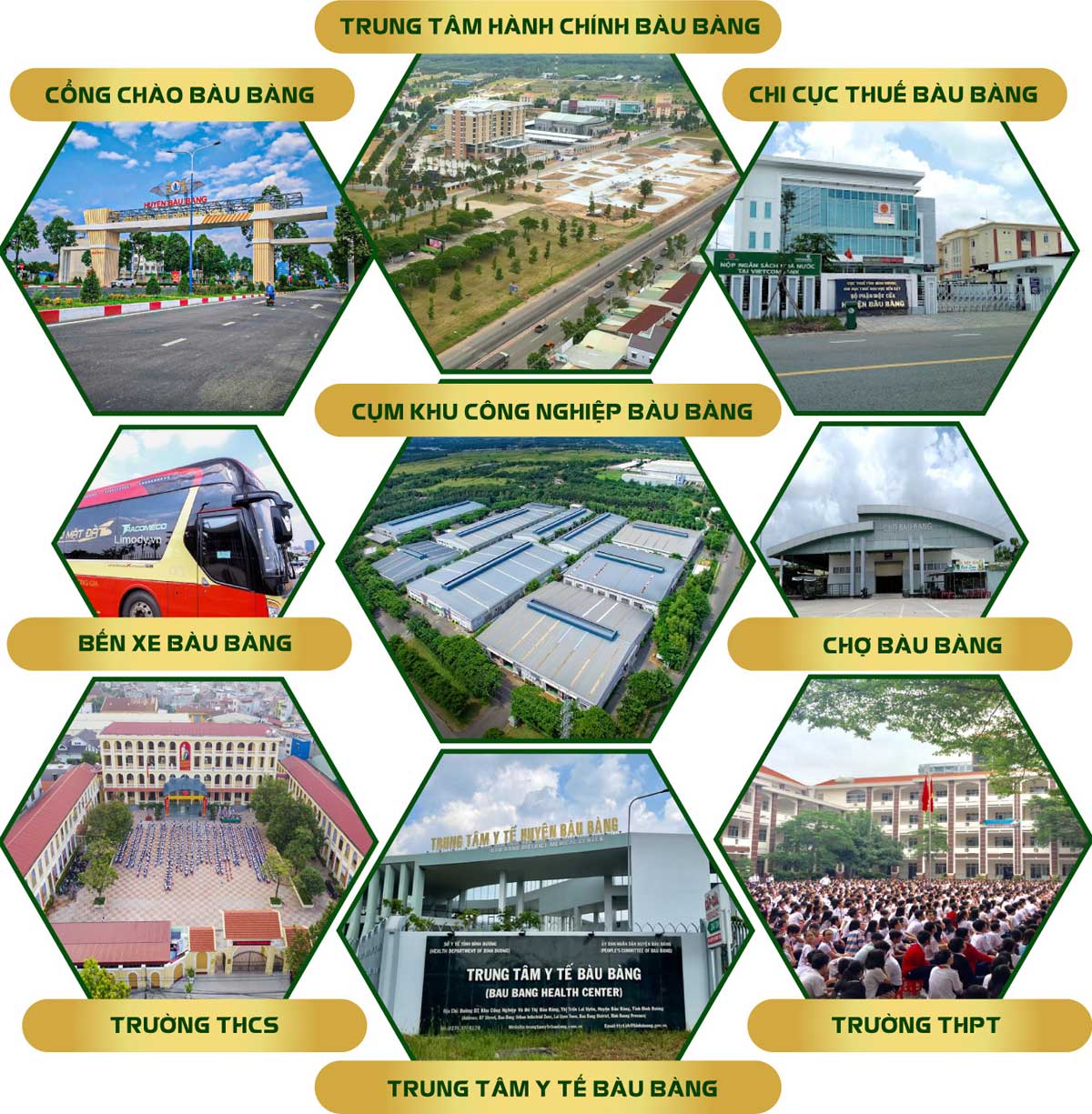 - Cách KCN Bàu Bàng, chợ Bàu Bàng, bệnh viện, trung tâm thể dục thể thao khoảng 5 phút