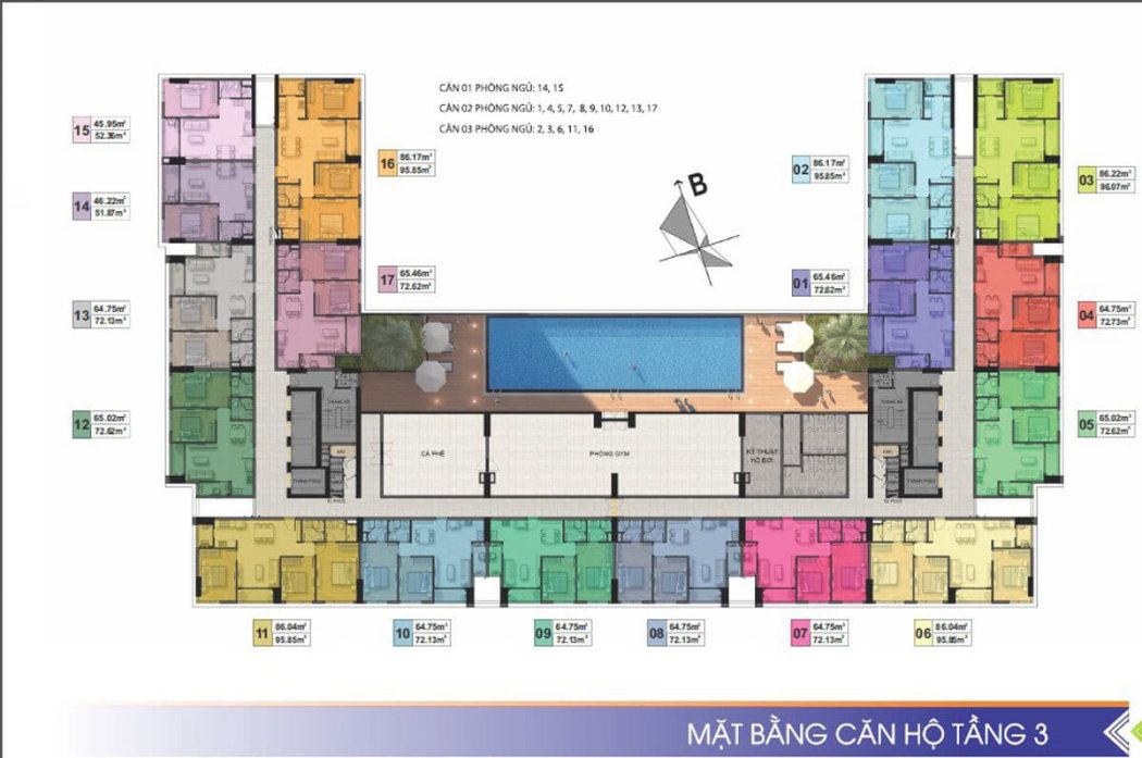 Mặt bằng tầng 3 Dự án Căn hộ Chung cư Phú Tài Residence
