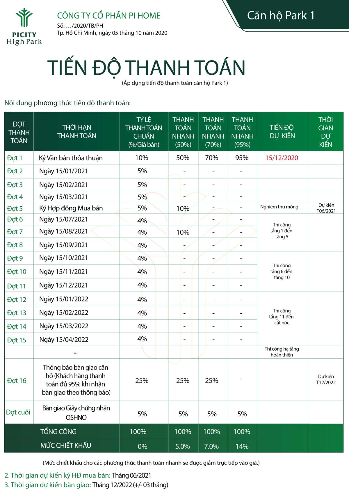 - Dự kiến thời gian bàn giao: 12/2022 (dự kiến)