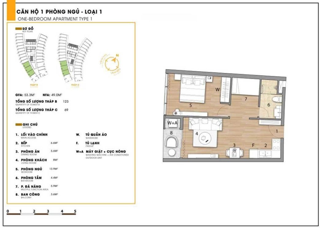 - Chiêu cao: 1 tầng hầm, 4 tầng khối đế , tầng 5 – tầng 36/40 là Aparthotel