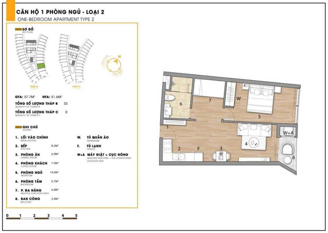 - 1pn: 4 căn: 50m2.
