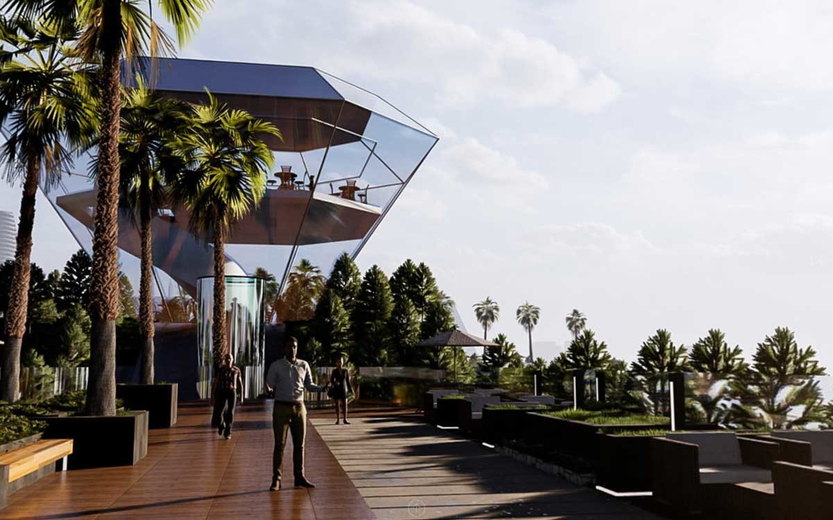 Ngay tại cầu nối trên nóc 2 tòa nhà Sunshine Horizon có 1 đài ngắm cảnh được chúng tôi thiết kế như 1 viên kim cương. Đây cũng chính là biểu tượng của dự án, kim cương là đại diện của sự giàu sang & đẳng cấp. Tại đây, các cư dân có thể ngắm nhìn toàn cảnh Sài Gòn từ trên cao